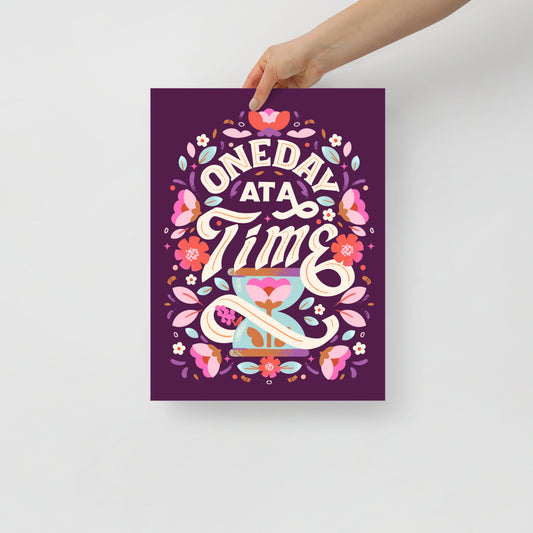 One Day at a Time" Hand-lettered Floral Poster (12x16)