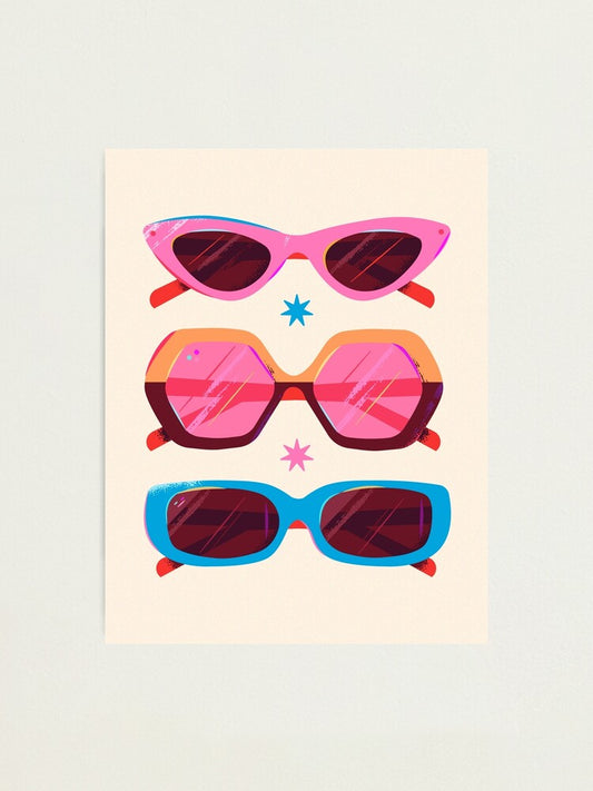Retro Sunnies 12x16" Poster – Colorful Print - Summer Sunglasses Wall Art
