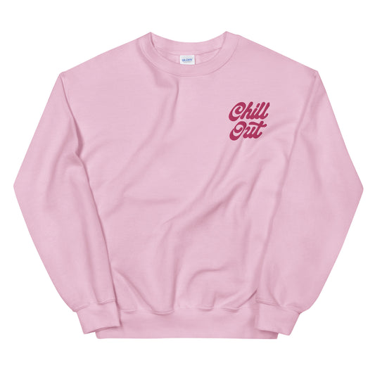 Chill Out - Soft Pink Embroidered Cozy Sweatshirt (Unisex)